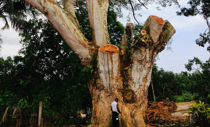 Comment se déroule un abattage d'arbre en situation difficile ?